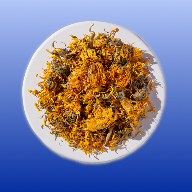 Calendula flowers, also known as marigold, showcase brilliant golden-orange petals that capture the essence of the sun. Their radiant hue adds a touch of elegance to any product or craft.