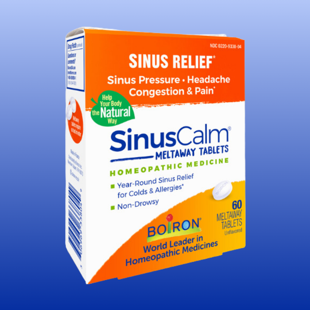 Unlike conventional medications that mask full-blown symptoms, SinusCalm by Boiron is specifically designed to support the body's natural healing ability to help relieve sinus symptoms. The non-drowsy, meltaway tablets are phenylephrine-free and won’t interact with other medications, including those for colds and allergies — two of the main causes of sinus congestion.