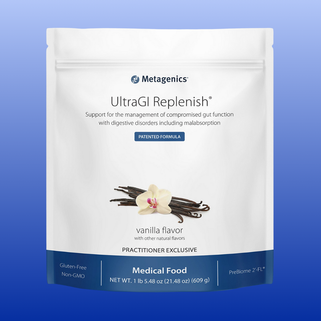 UltraGI Replenish® meets the increased nutritional needs of those with compromised gut function. Its advanced formula supports digestion and nutrient absorption. It features a prebiotic similar to one found in breast milk that aids in replenishing the intestinal lining and promoting a healthy gut microbiota.*
