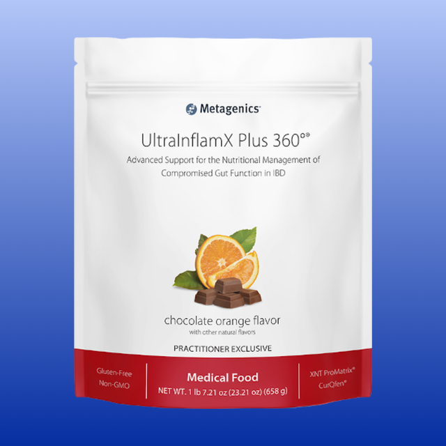 UltraInflamX Plus 360°® is formulated to support people with compromised gut function from inflammatory bowel disease (IBD), including ulcerative colitis and Crohn’s. Clinically studied, patented blend of curcumin and fenugreek designed for easier absorption and reliable clinical outcomes.*