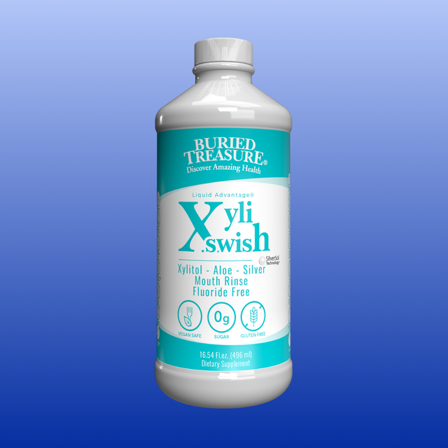 Buried Treasure's Xyli Swish introduces a fun, fearless way to achieve a sparkling clean mouth without resorting to alcohol or fluoride. This unique mouth rinse is crafted with a blend of natural ingredients like Xylitol, Aloe Vera, Purified Silver, and Peppermint Oil, making it the ideal choice for those seeking a mouthwash that's both effective and enjoyable to use.